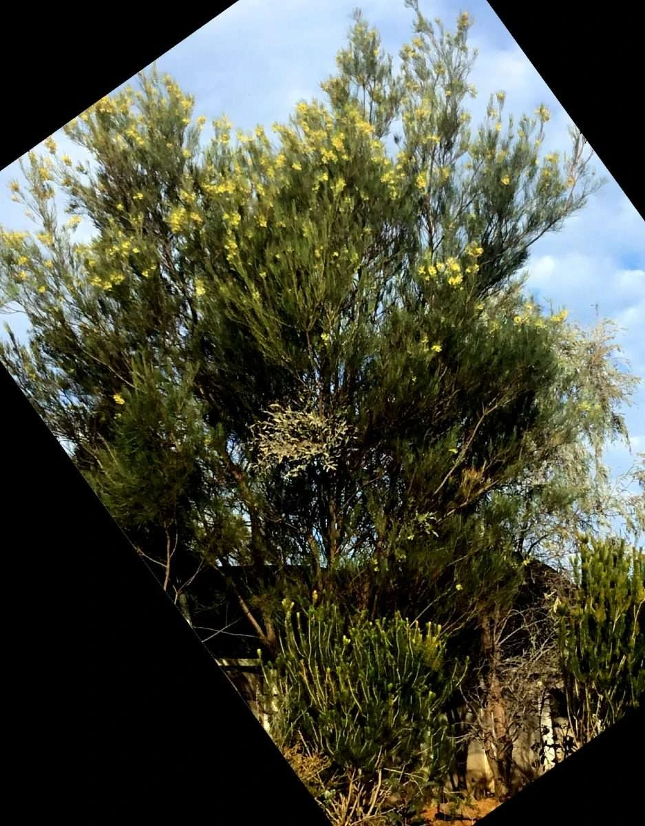 1–4 m high, mine reached 3m after 7yrs. I grew them as a boundry hedge; they were a bit straggly looking up close, but would ‘bush up’ with pruning. Flowers in response to rain. And the ‘leaves’ do not fall to the ground like pine needles do. Drought hardy. Looks ‘suited’ in a bush garden.