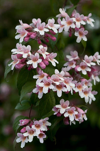 A mesmerizing medium-sized deciduous shrub, prized for its beautiful appearance. From May to June the arching stems play host to masses of pale pink, trumpet-shaped blooms that contrast beautifully with the delicate yellow throat. These gather in abundant clusters on arching branches amongst simple green leaves. As the flowers fade, this dark green foliage makes an elegant backdrop for other summer-flowering shrubs and perennials
