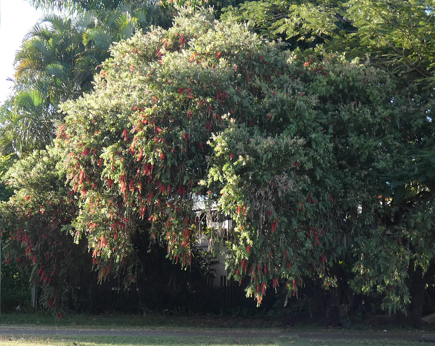 This small tree starts to really look good in its maturity, 10 -15 years after planting. It flowers prolifically with big red bottle brush flowers, and forms a mass dense shady canopy with pendulous foliage, although some forms are more pendulous than others, and I have seen at least 7 cultivars from this species. There is good info on them at here