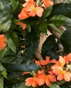 Organically grown Crossandra infundibuliformis, the firecracker flower, is a evergreen shrub growing to 1 m (3 ft 3 in) with margined leaves and fan-shaped flowers & are unusually shaped with 3 to 5 asymmetrical petals. They grow from four-sided stalked spikes. Flower colours range from the common orange to salmon-orange or apricot, coral to red, yellow and even turquoise.
