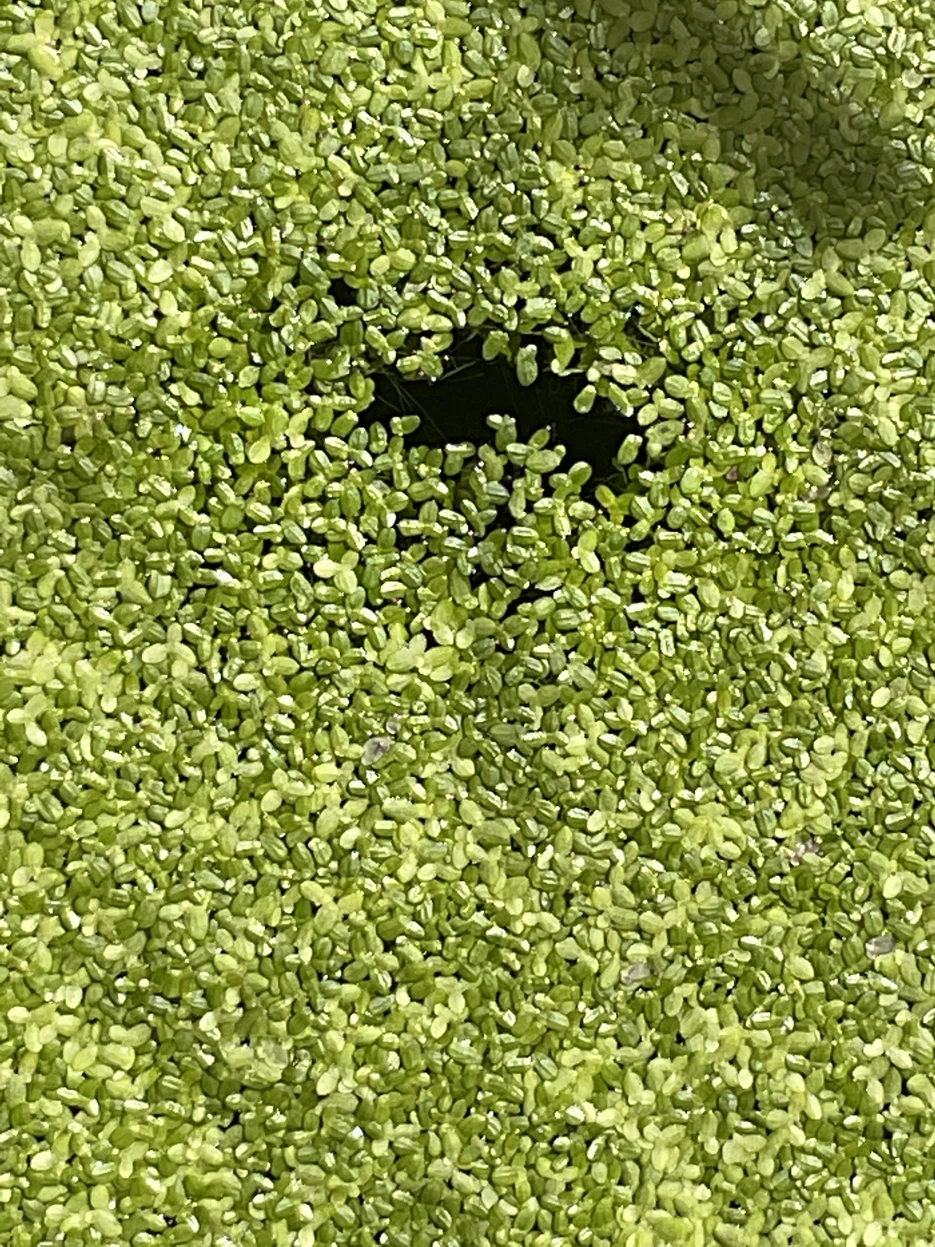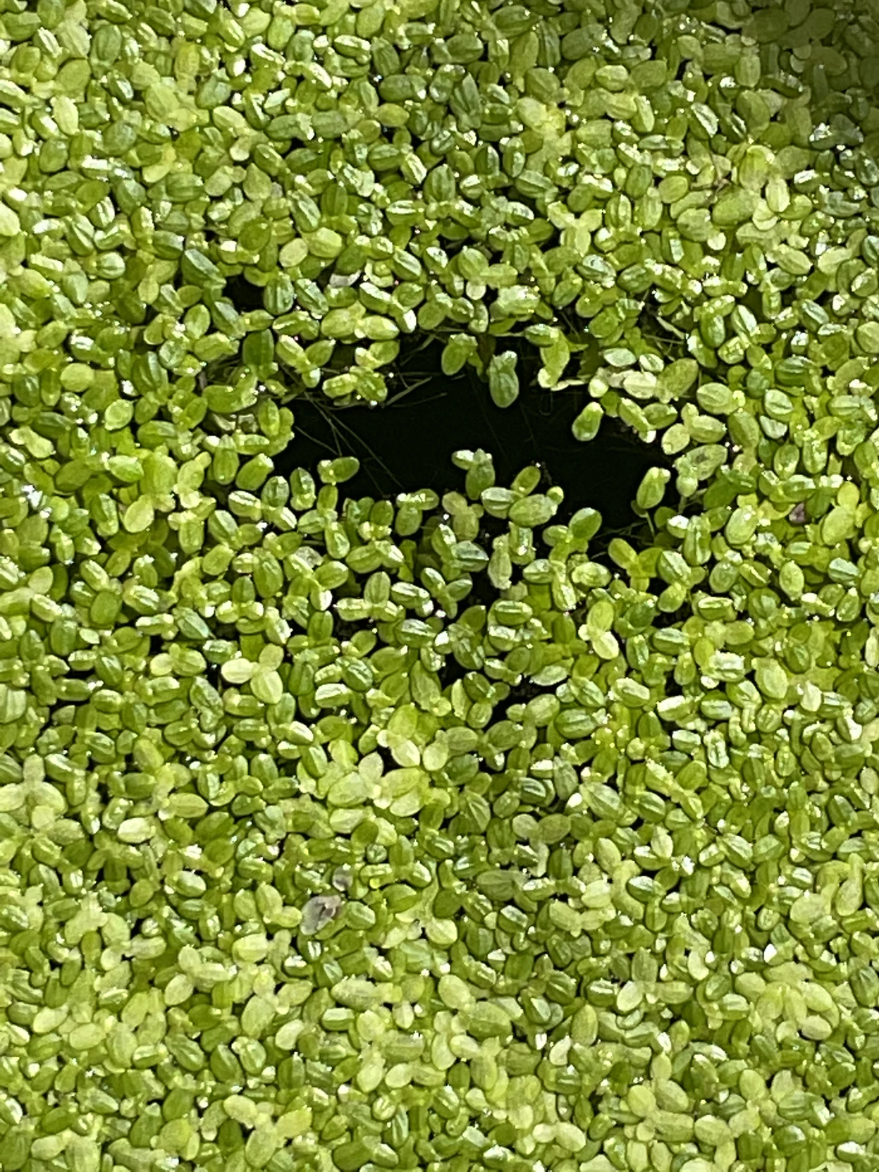 Freshwater plant of the genus Lemna. A floating aquatic that forms dense, bright green mats. I love it as it absorbs any excess nutrients in the water, keeping my pond crystal clear and healthy. Plus, single celled creatures live in it, create food for my native small fish.