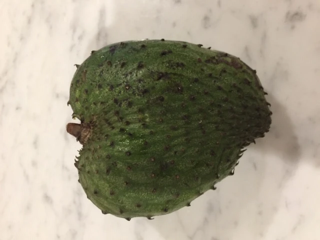 Soursop, also known as graviola, is the fruit of Annona muricata, a type of tree native to tropical regions of the Americas ( 1 ). This prickly green fruit has a creamy texture and a strong flavor that is often compared to pineapple or strawberry.