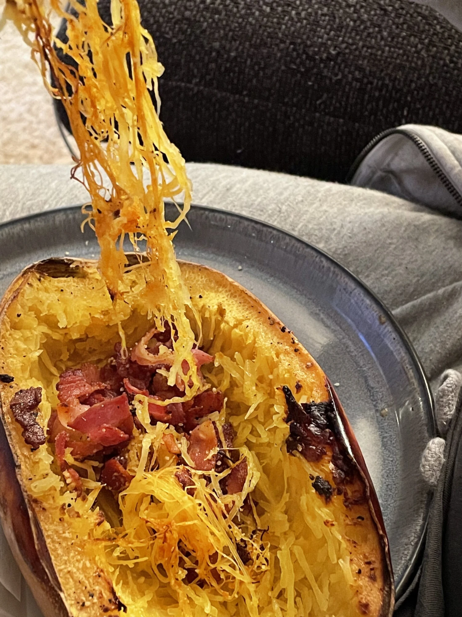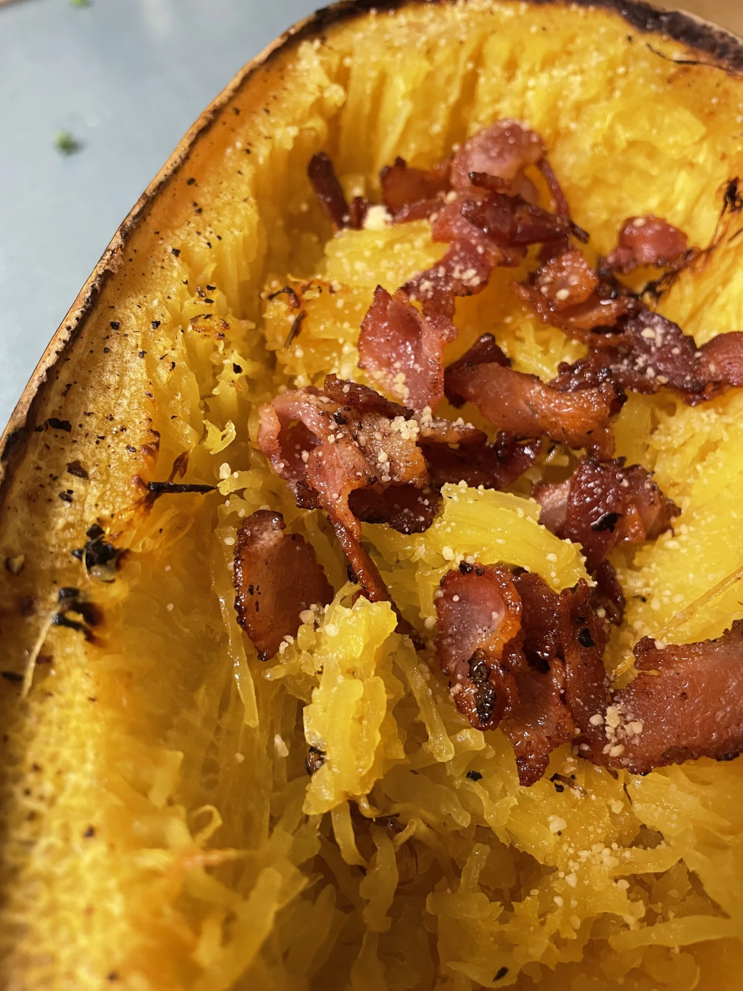 There’s many different recipes online for cooking but I’ve found that slowly roasting the squash (at 180*c for roughly 1.5hrs), cut into halves and cut side down on a baking tray is the best. I add bacon and cheese. Beautiful flavours !